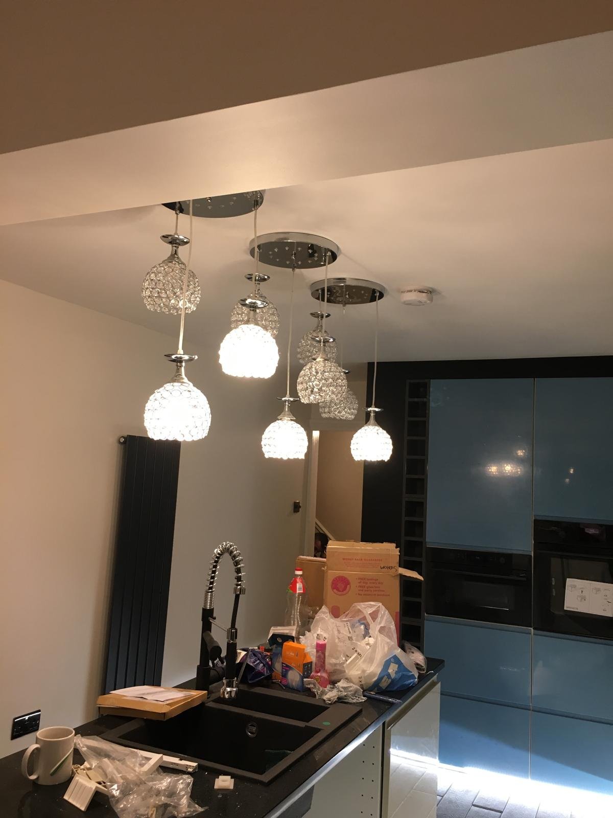 - Multi-pendant feature lighting fitted and aligned